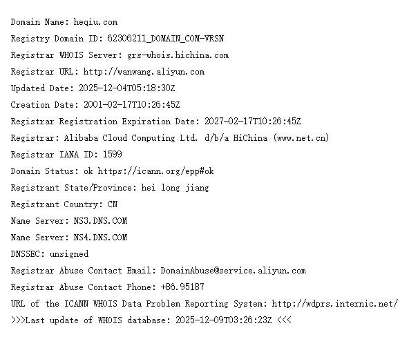 洽公网 科技 互联网 2025-12-09 11:25:28 荷球heqiu.com8888元的价格成交 heqiu.com于2001年2月17日注册,以8888元的价格成交。12月4日注册信息发生变更。域名前缀有荷球等含义。该域名曾被一家名为“何求”的设计平台启用,提供网站建设、艺术设计、软件及编程的教学、素材等。