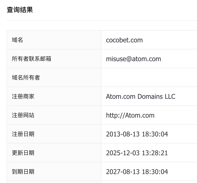 (域名CocoBet.com在聚查网上查询的数据)