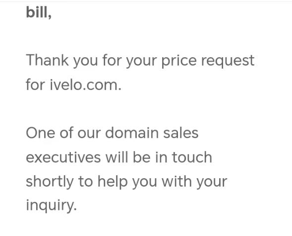 据悉,iVelo.com 域名一直在海外,持有人非华人,因语言障碍和可议价空间难度大,收购困难重重。为此杭州非古科技有限公司特别委托国际域名专家SuperBill负责了此次域名收购,经SuperBill耐心、专业、高效的沟通,历时3个月,最终帮助非古科技顺利拿下了这枚心仪已久的.com顶级域名!以下是部分交易细节: